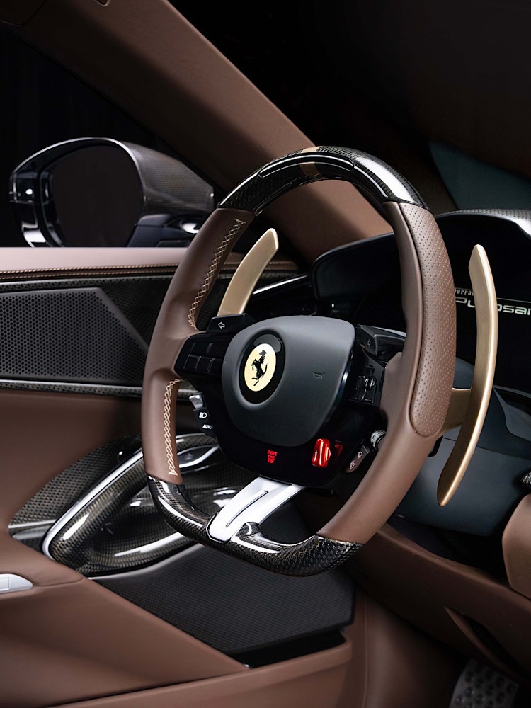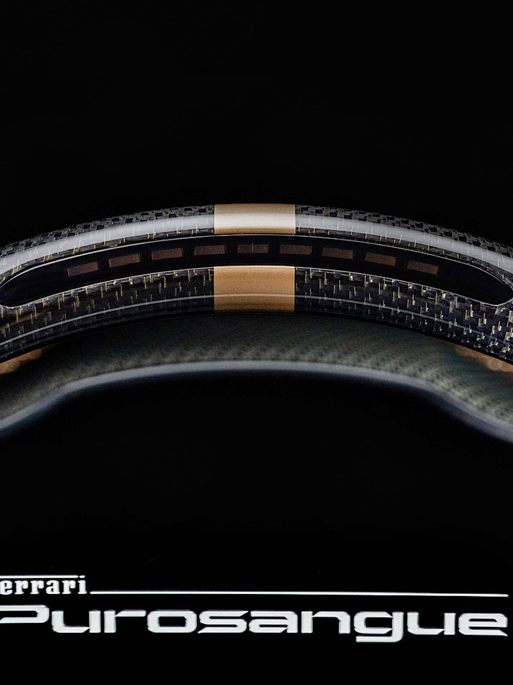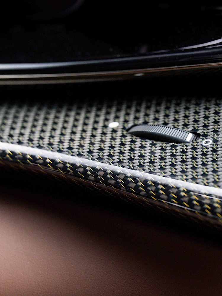 for the Purosangue: interior carbon fiber woven with gold thread. This innovative material, created for the region, blends